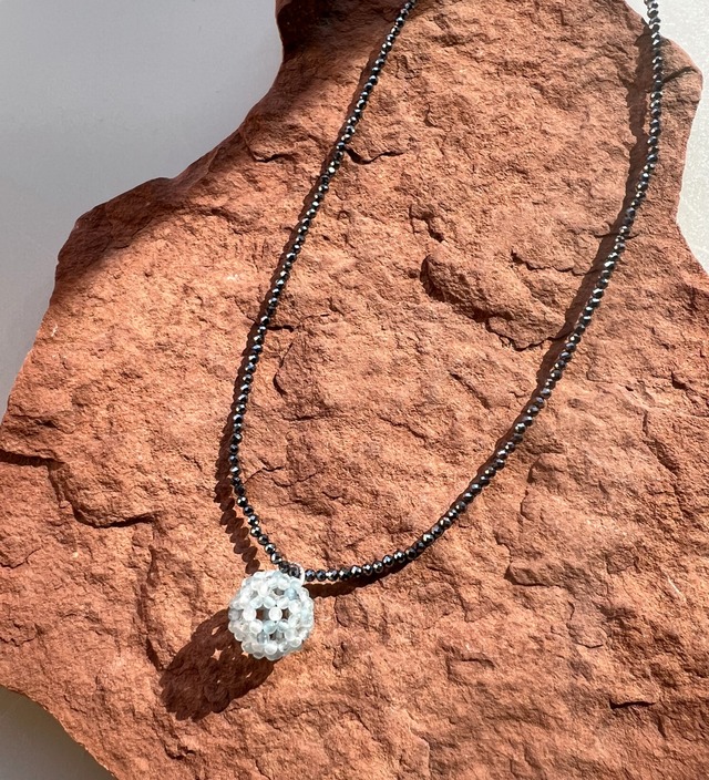 3月の誕生石【アクアマリン・ラウンド2.1mm】神聖幾何学バッキーボールネックレス