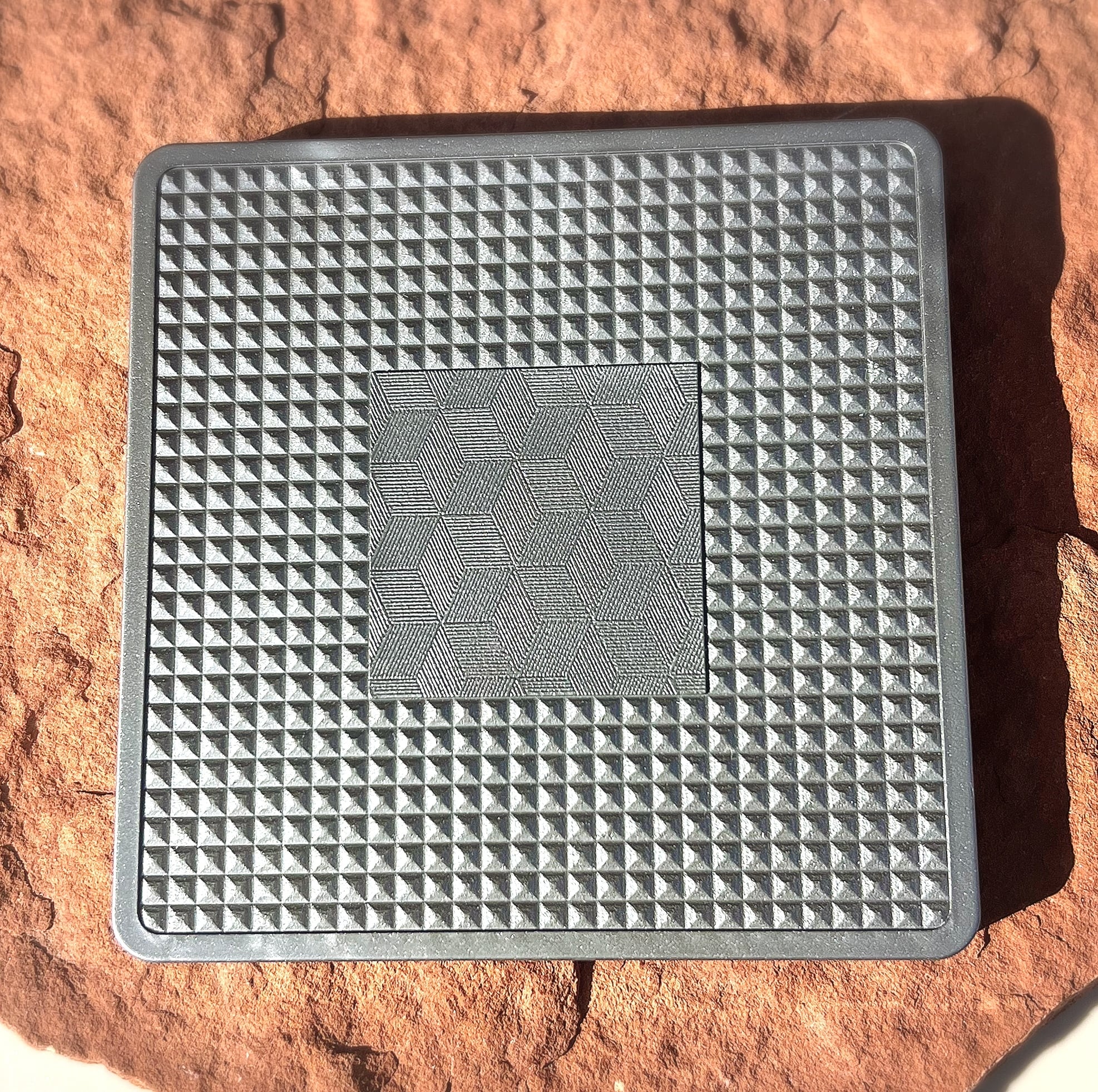 スペースコースターの姉妹品で、変わった模様が自慢です。この形状も四角形ですが、模様には縦横に小さなピラミッドが780個刻まれています。標準的なスペースコースターと違って、個性あるデザインとしました。活性酸素が過剰となった環境ではアンバランスな環境が発生します。自然破壊、河川や湖沼の汚染、排気ガス、土壌汚染、海洋汚染などは活性酸素が過剰となり微生物が減少したアンバランスな状態です。