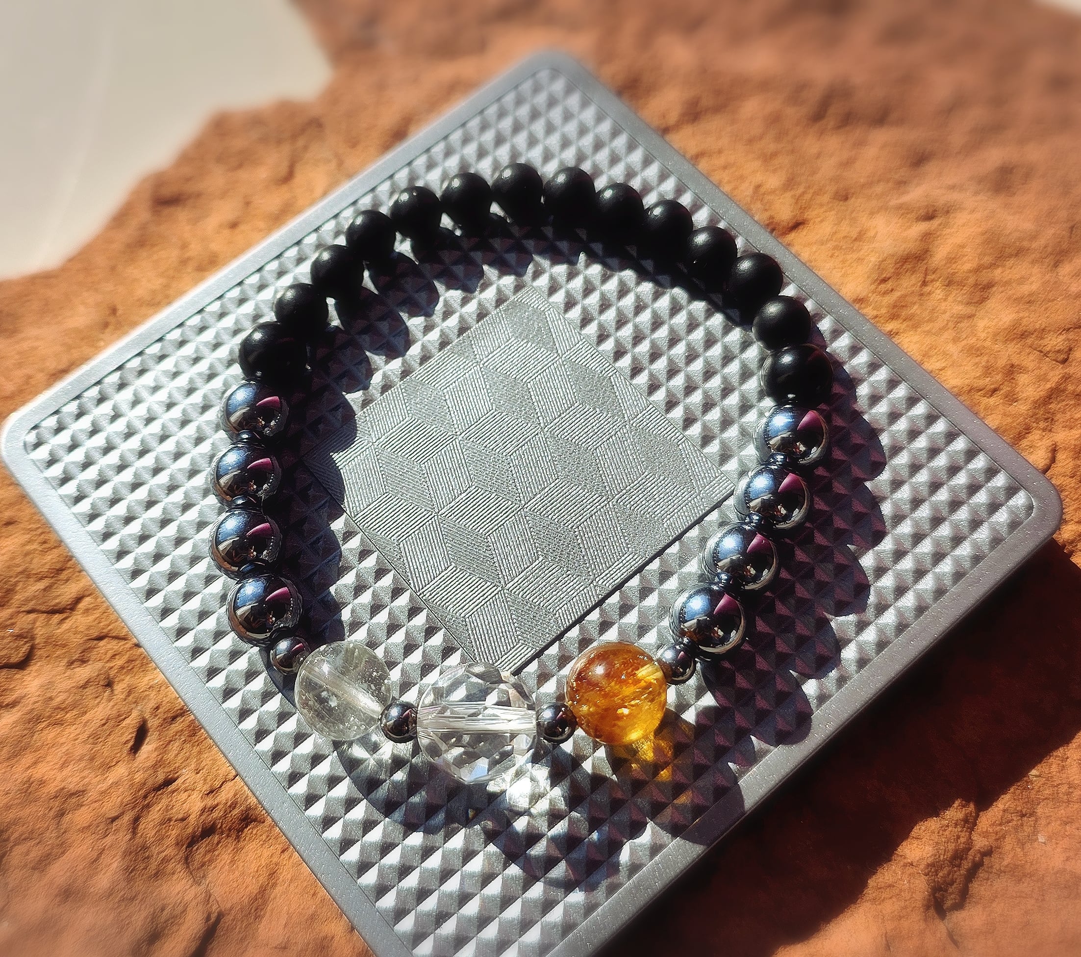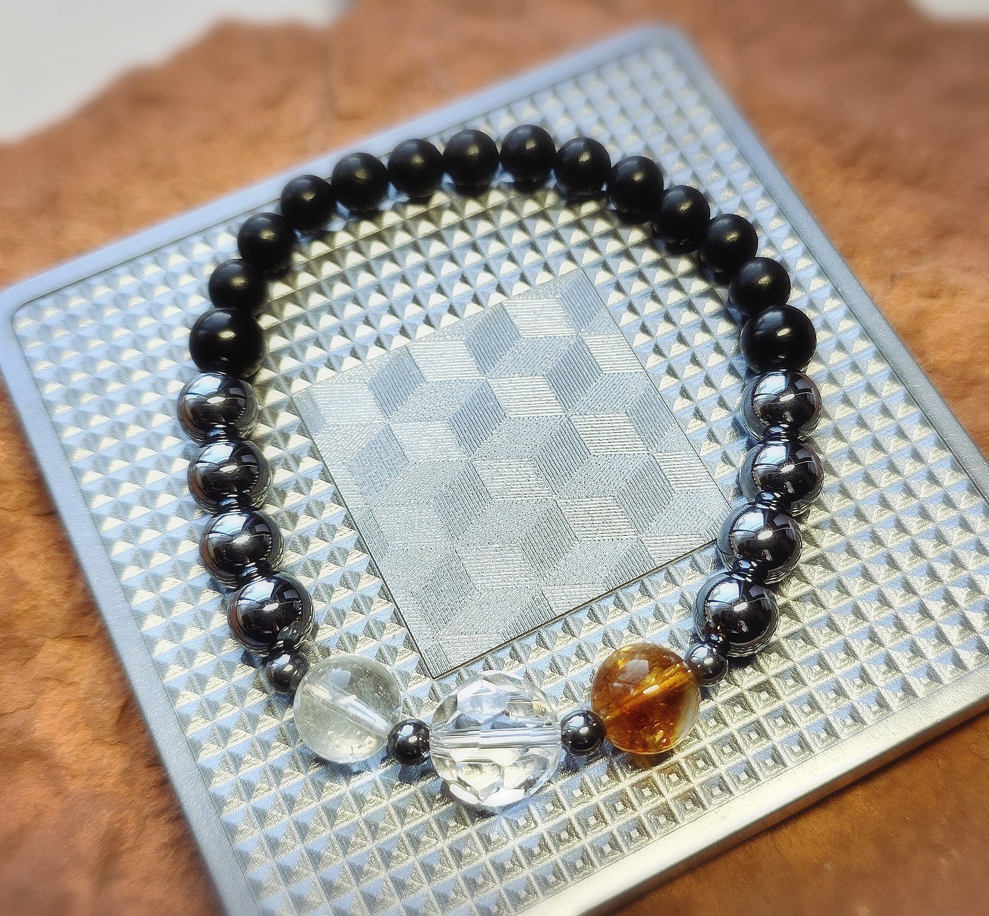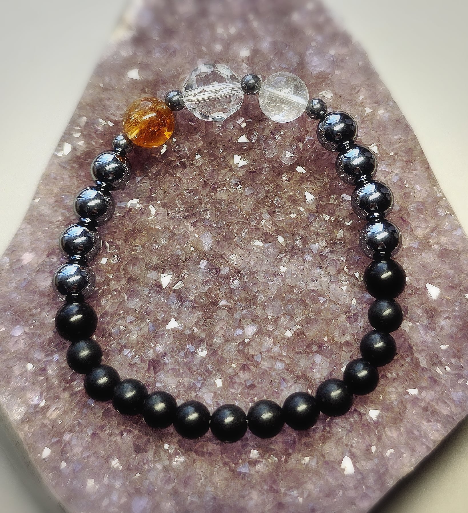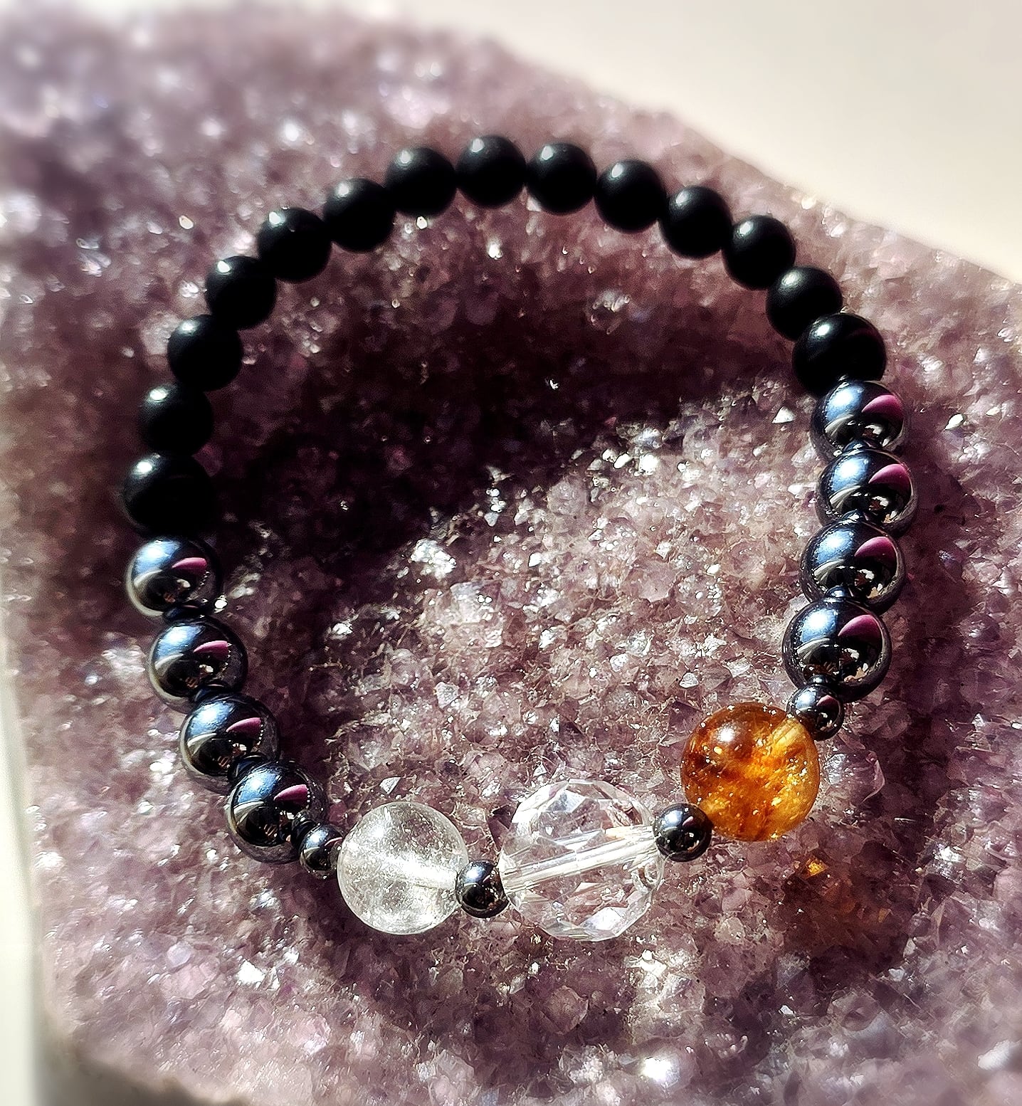11月の誕生石『トパーズ』、『シトリン』×水晶(バッキーボールカット)×シュンガイト×テラヘルツ×ブラックシリカ【電磁波対策健康ブレスレット】