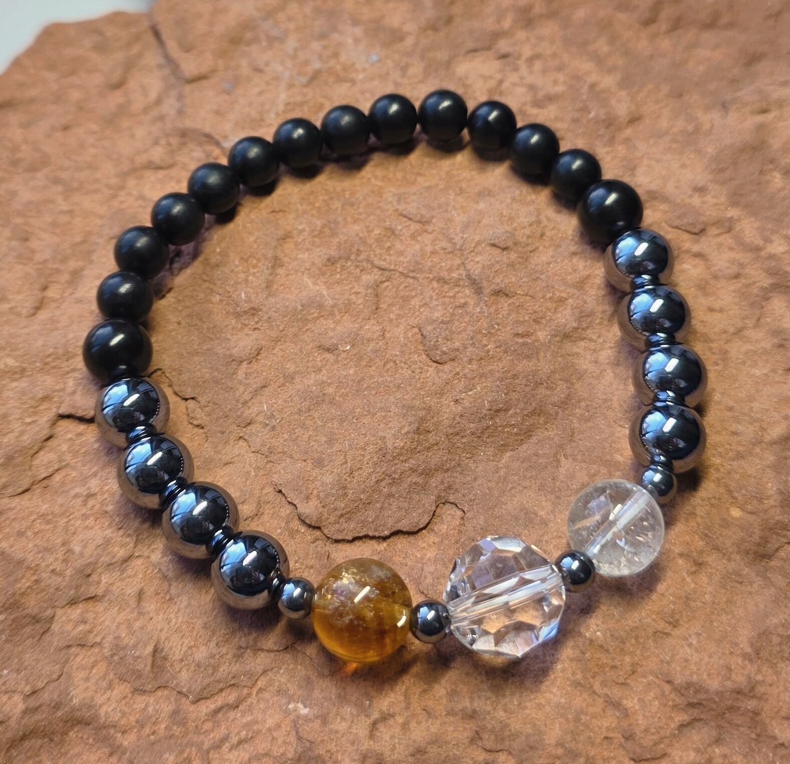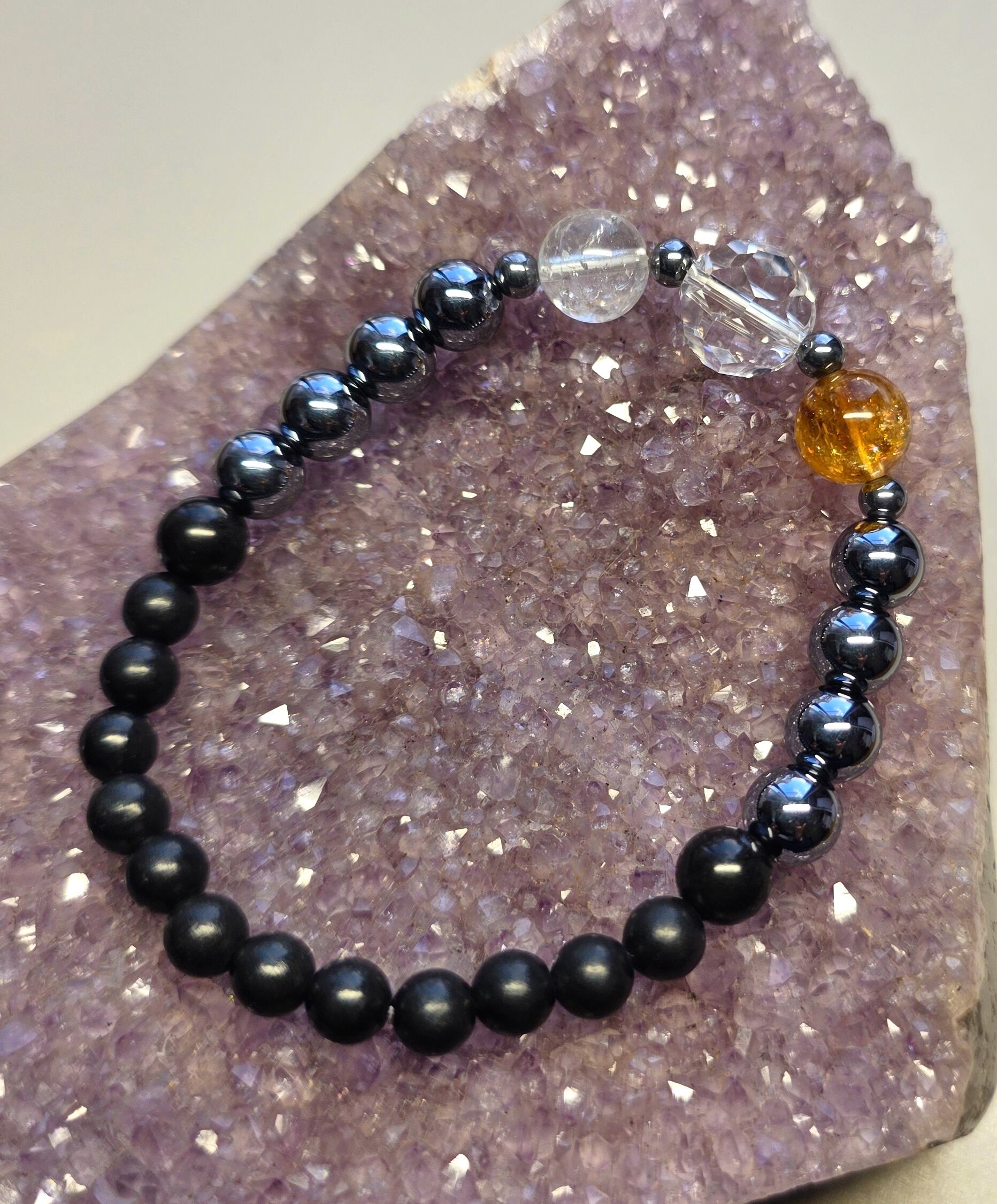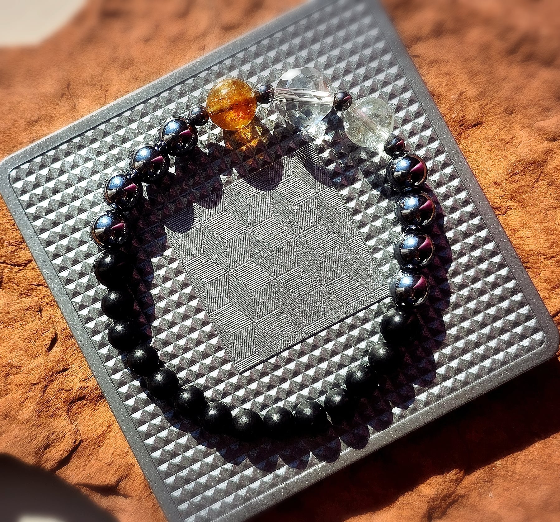 11月の誕生石『トパーズ』、『シトリン』×水晶(バッキーボールカット)×シュンガイト×テラヘルツ×ブラックシリカ【電磁波対策健康ブレスレット】