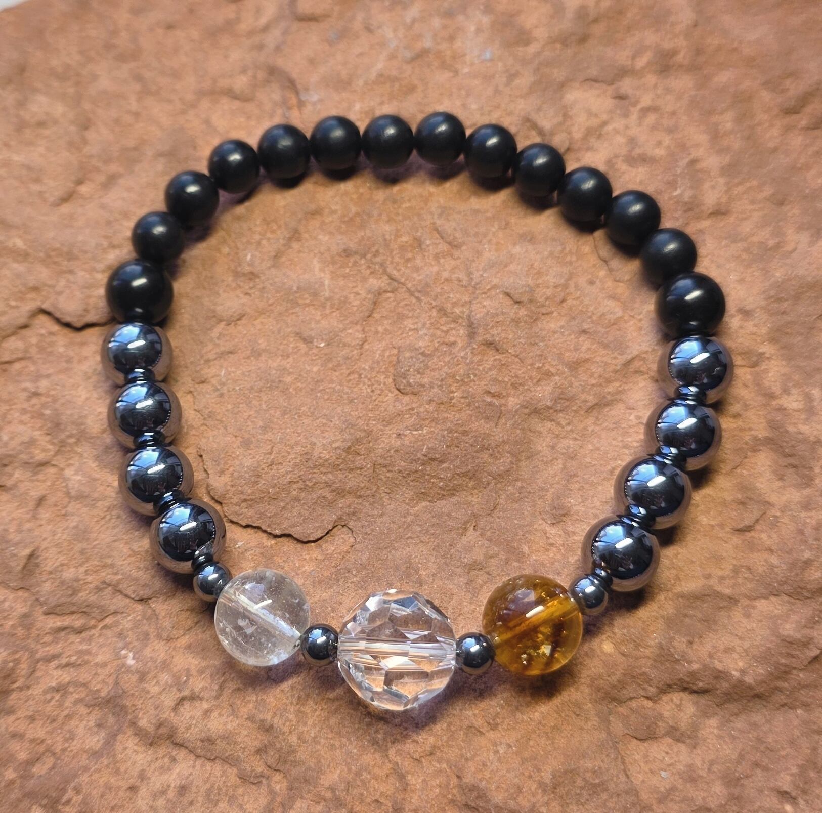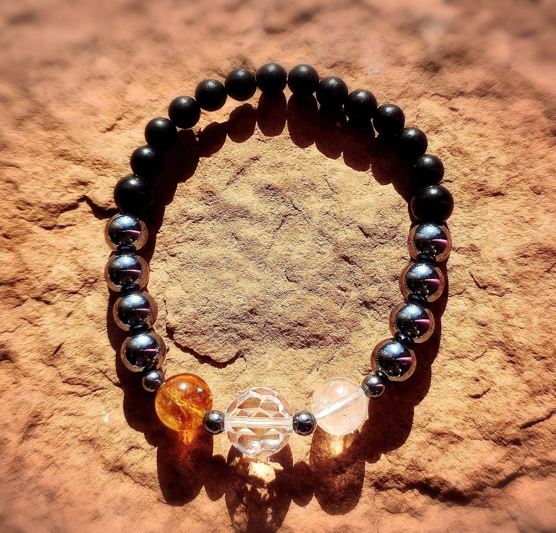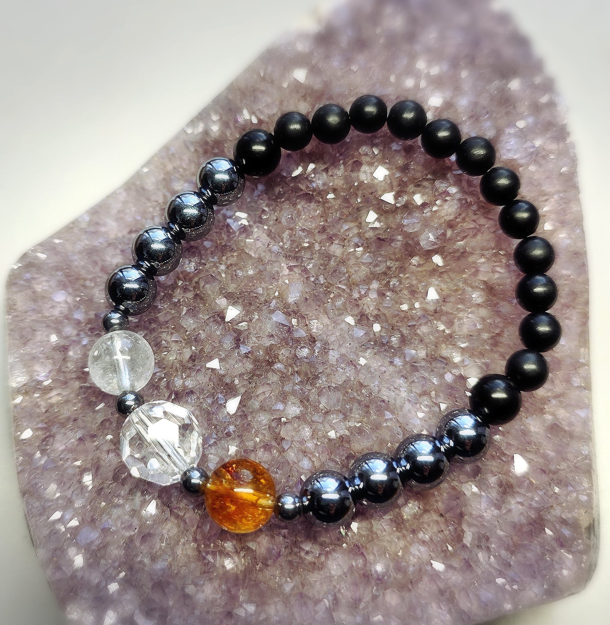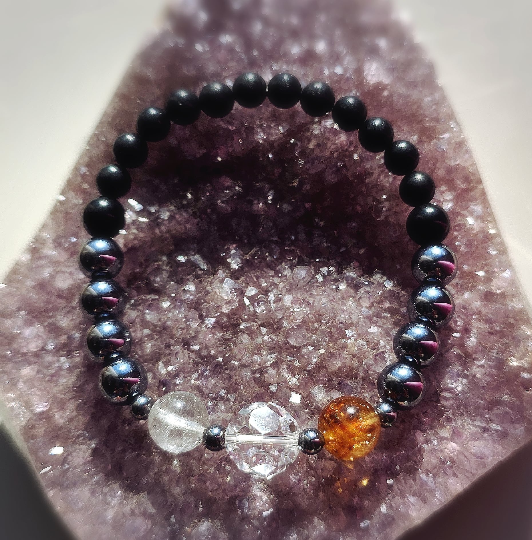 11月の誕生石『トパーズ』、『シトリン』×水晶(バッキーボールカット)×シュンガイト×テラヘルツ×ブラックシリカ【電磁波対策健康ブレスレット】