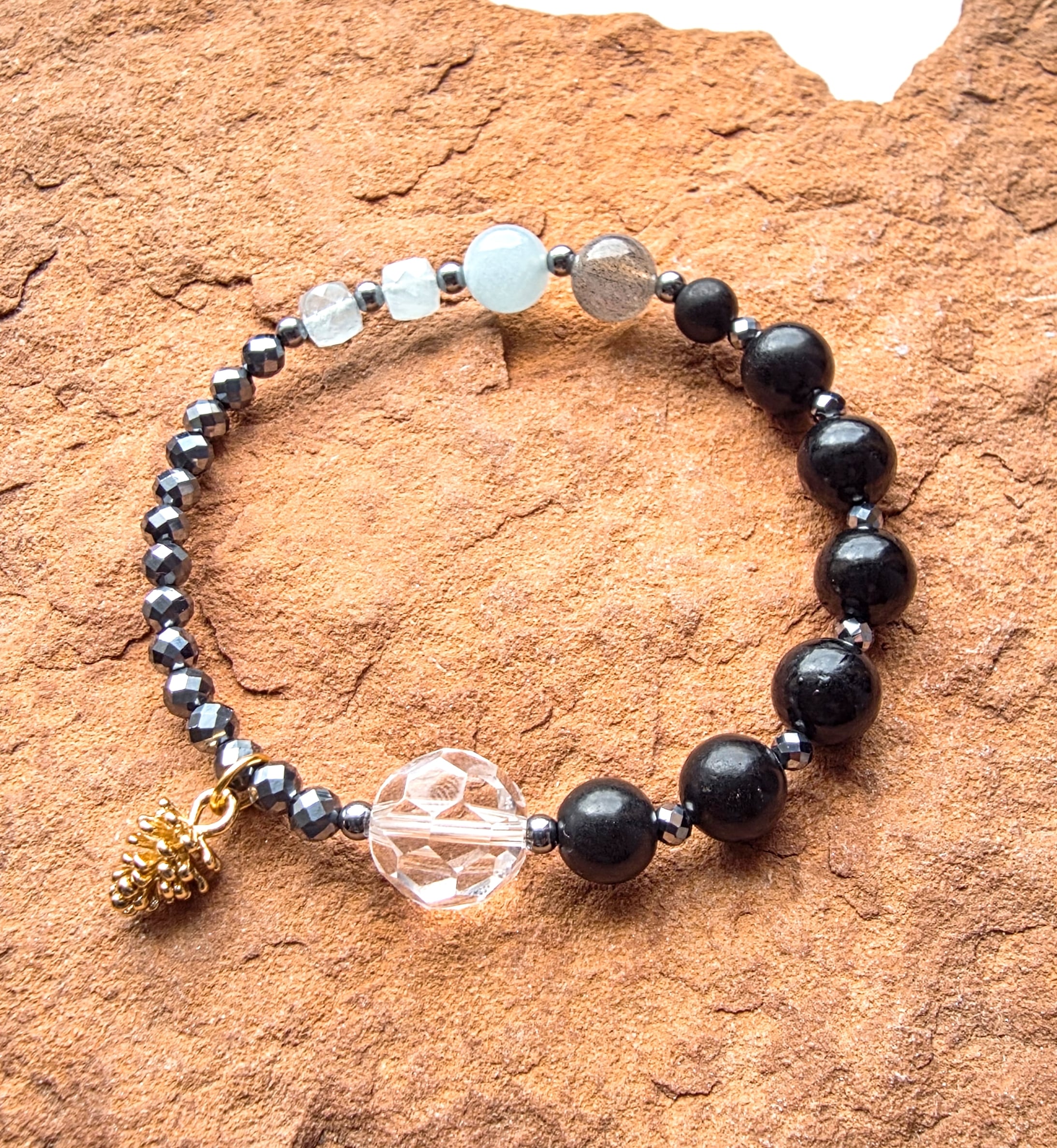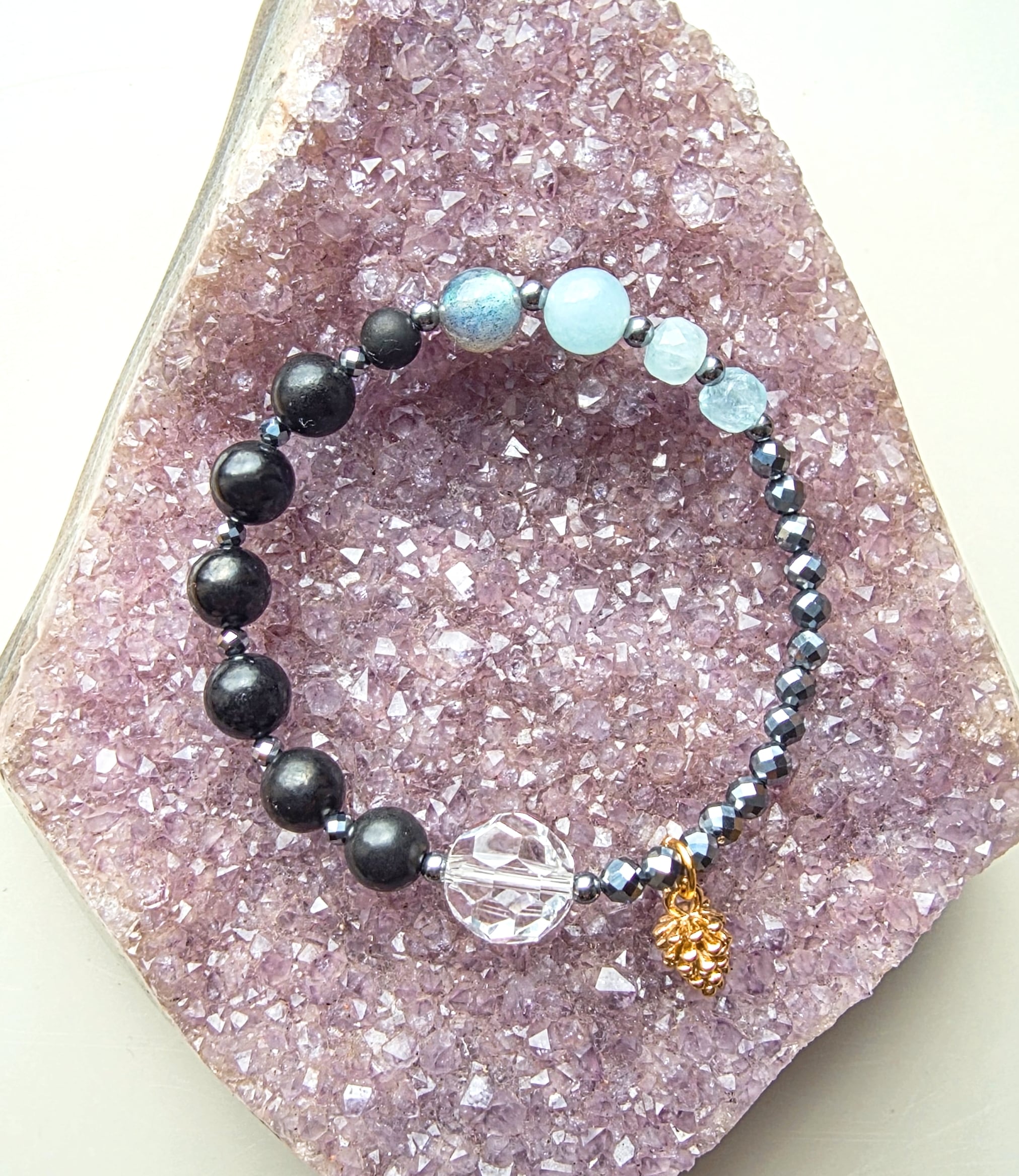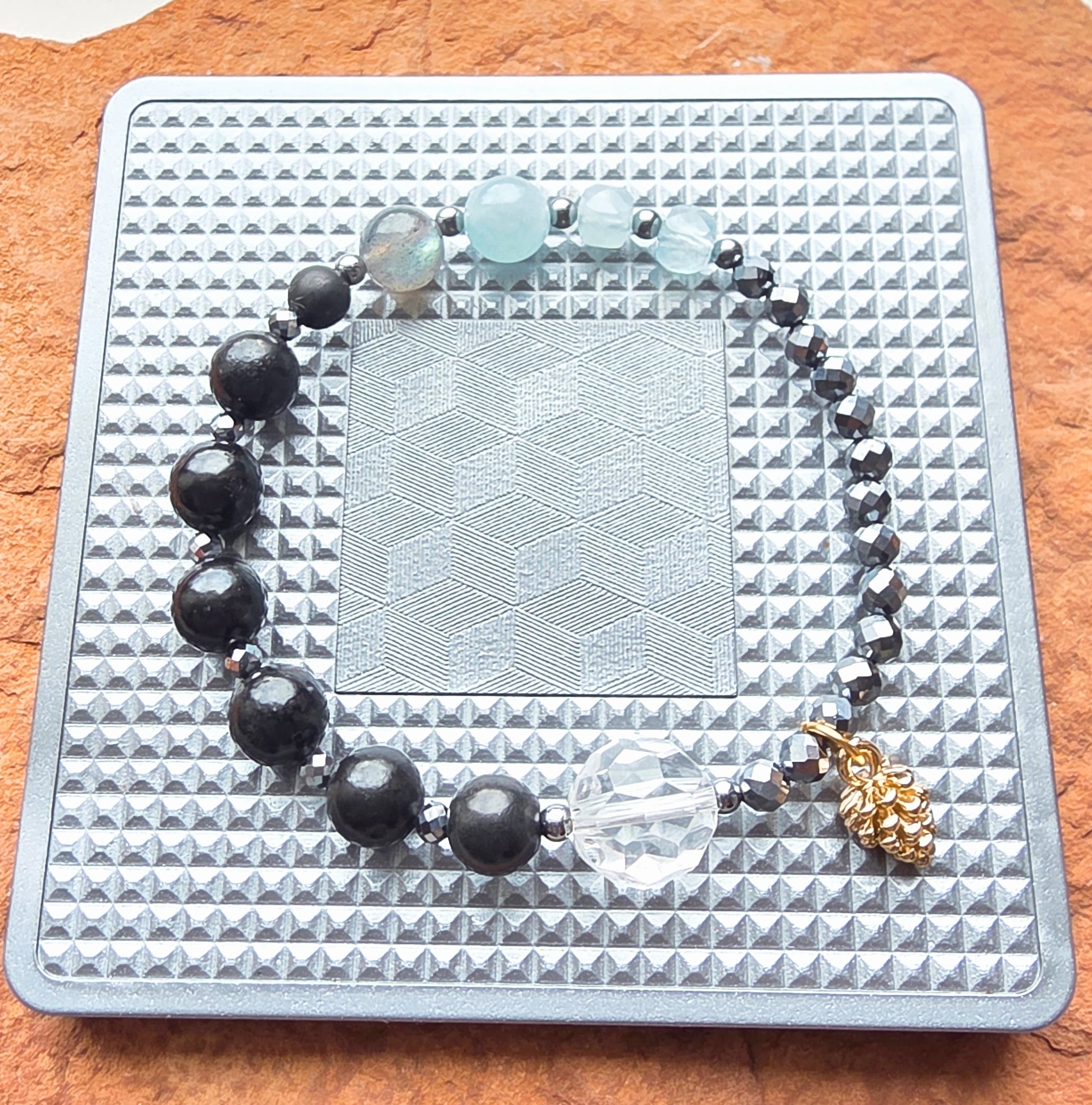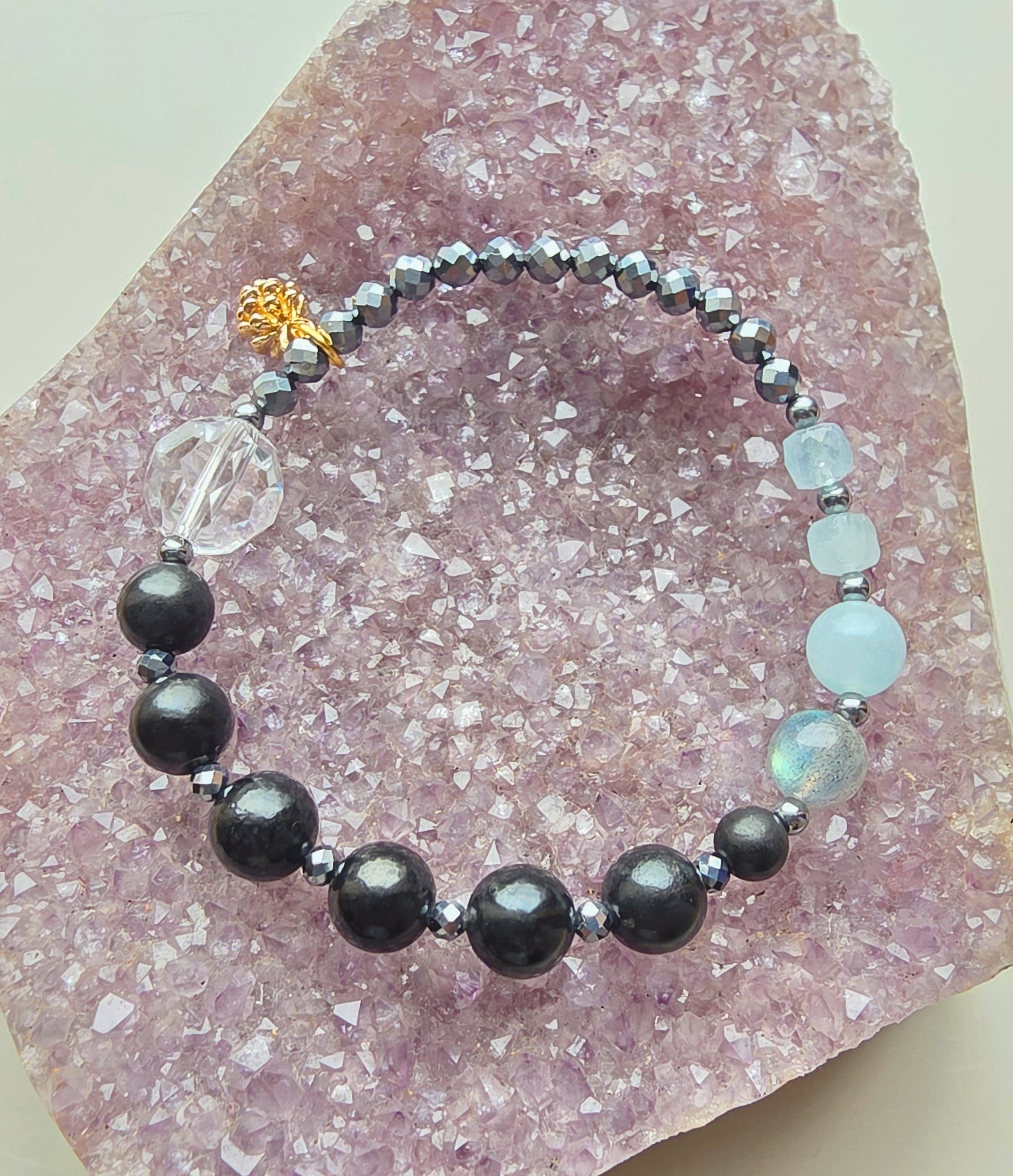 3月の誕生石アクアマリン×ラブラドライト×バッキーボール水晶×シュンガイト×テラヘルツ×ブラックシリカ