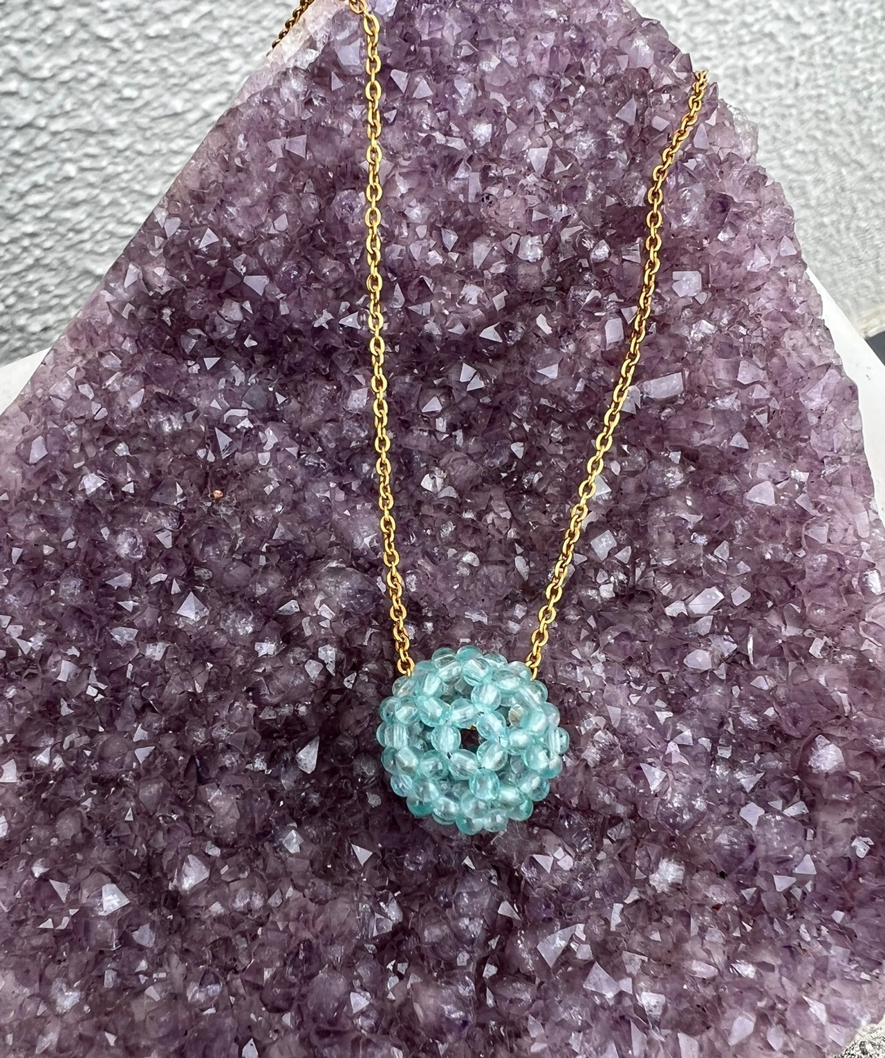 神聖幾何学フラーレン【アパタイト・ラウンド2.1mm】バッキーボール ステンレス製チェーン・ゴールド