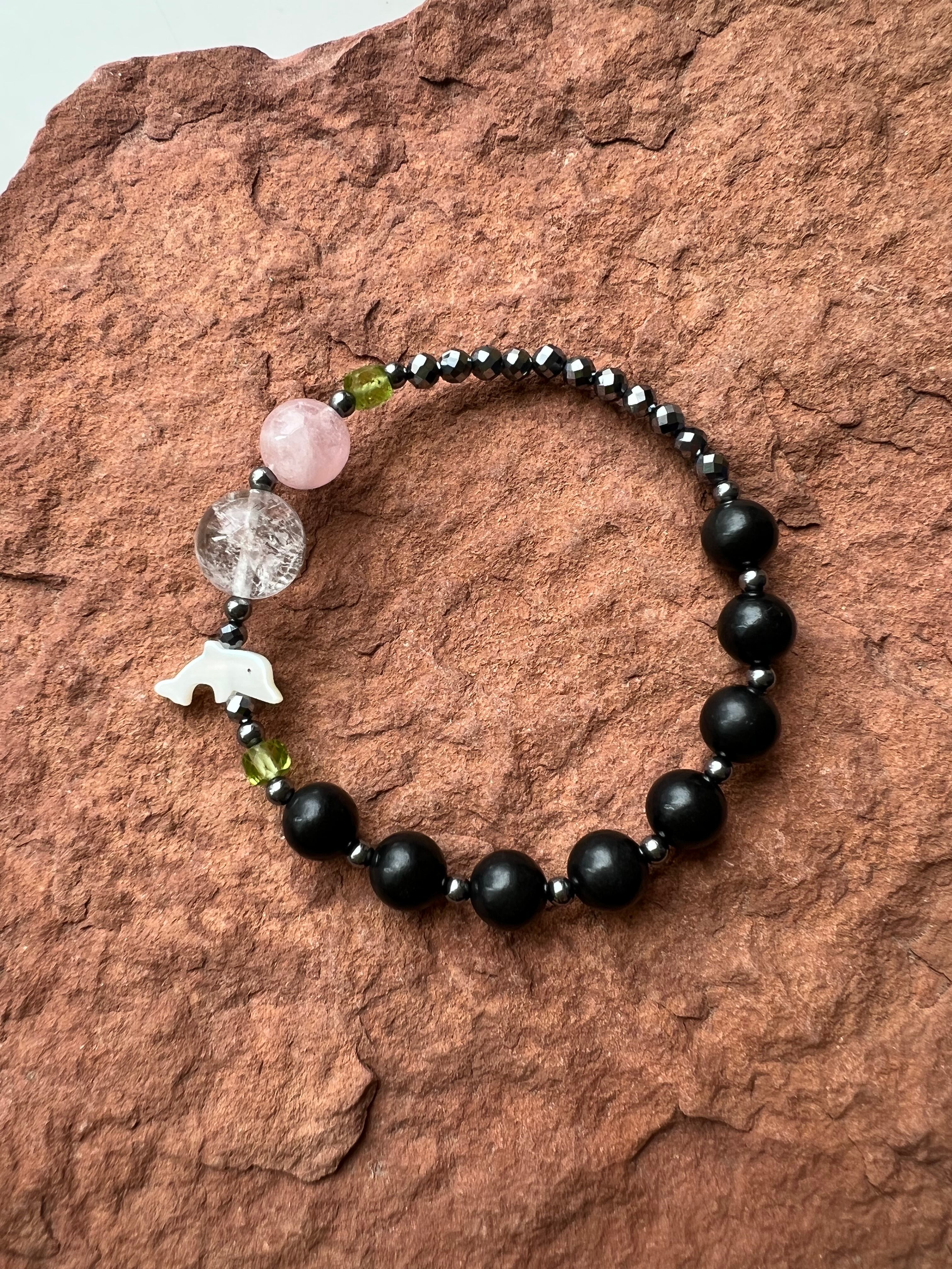 【電磁波対策ブレス】4月のモルガナイト×ペリドット×イルカ×アイスクリスタル】