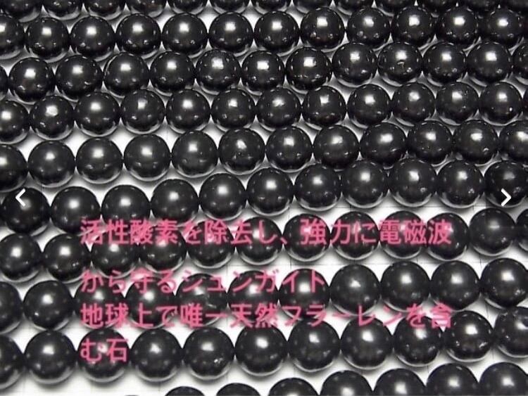 電磁放射線を遮る力があるといわれている希少石の「シュンガイト」ラウンド4mmを90粒使用しています。