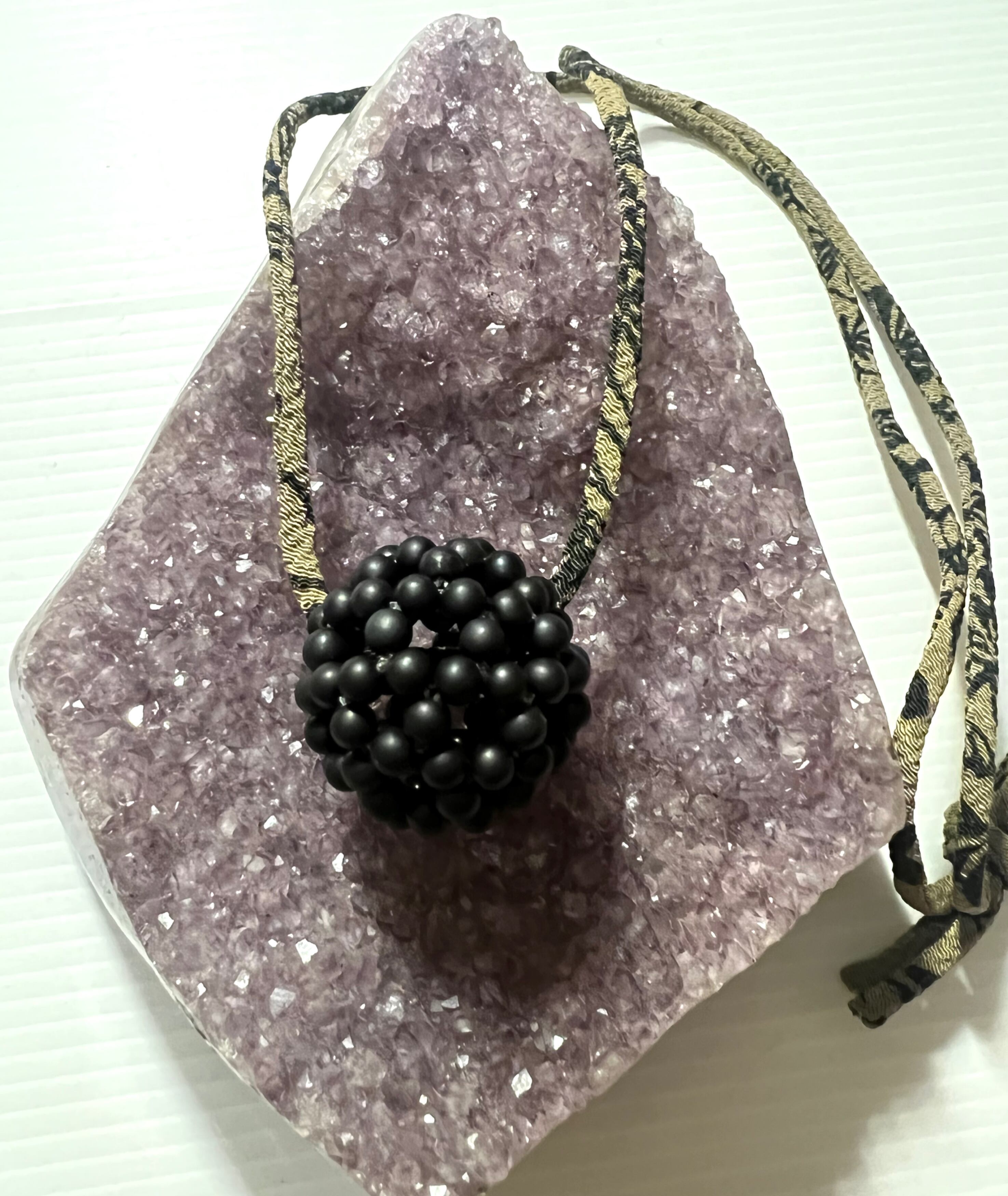 電磁波対策に効果的といわれている希少な石【シュンガイト】で作った『フラーレン・バッキーボール×KOFU』のコラボネックレス
