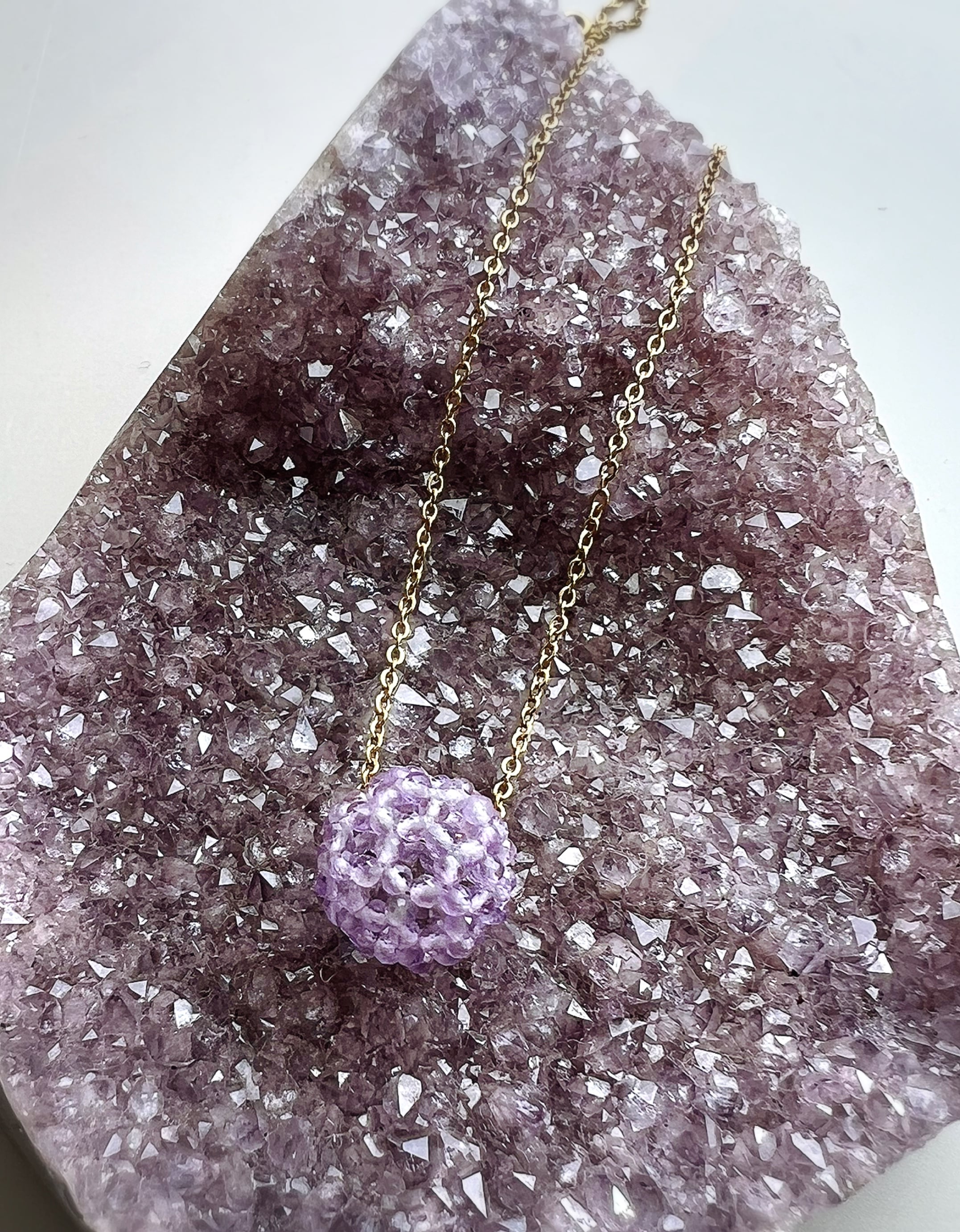 2月の誕生石【神聖幾何学バッキーボール・フラーレン】ピンクアメジスト・カットラウンド2.1mm チェーン・ゴールド