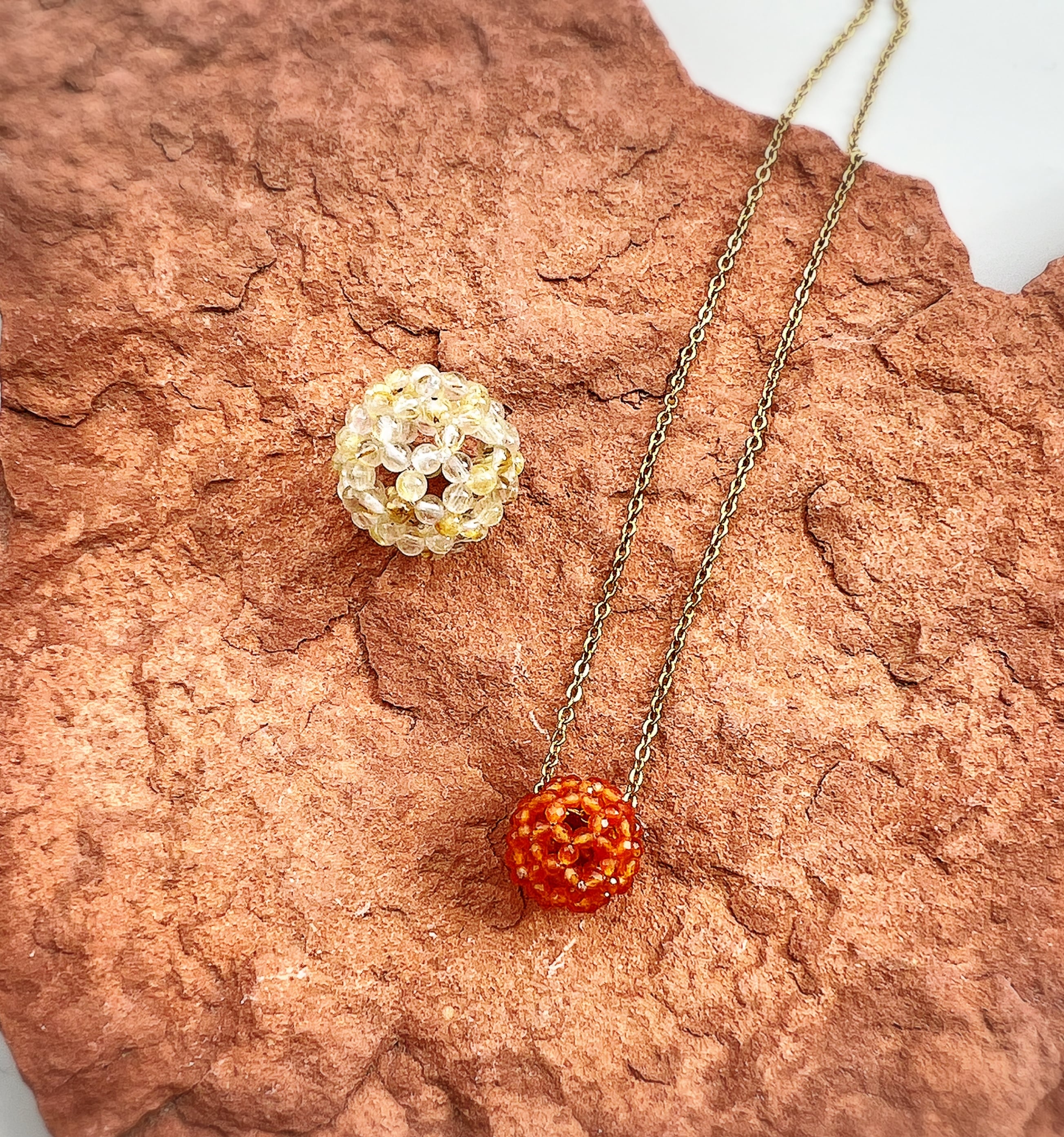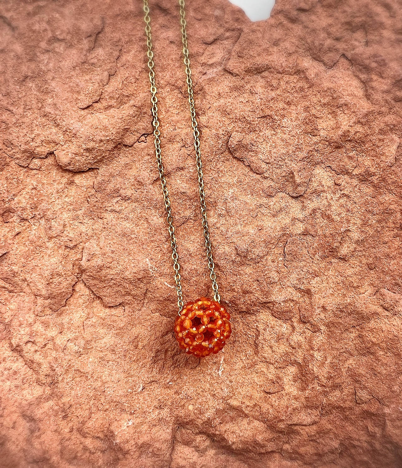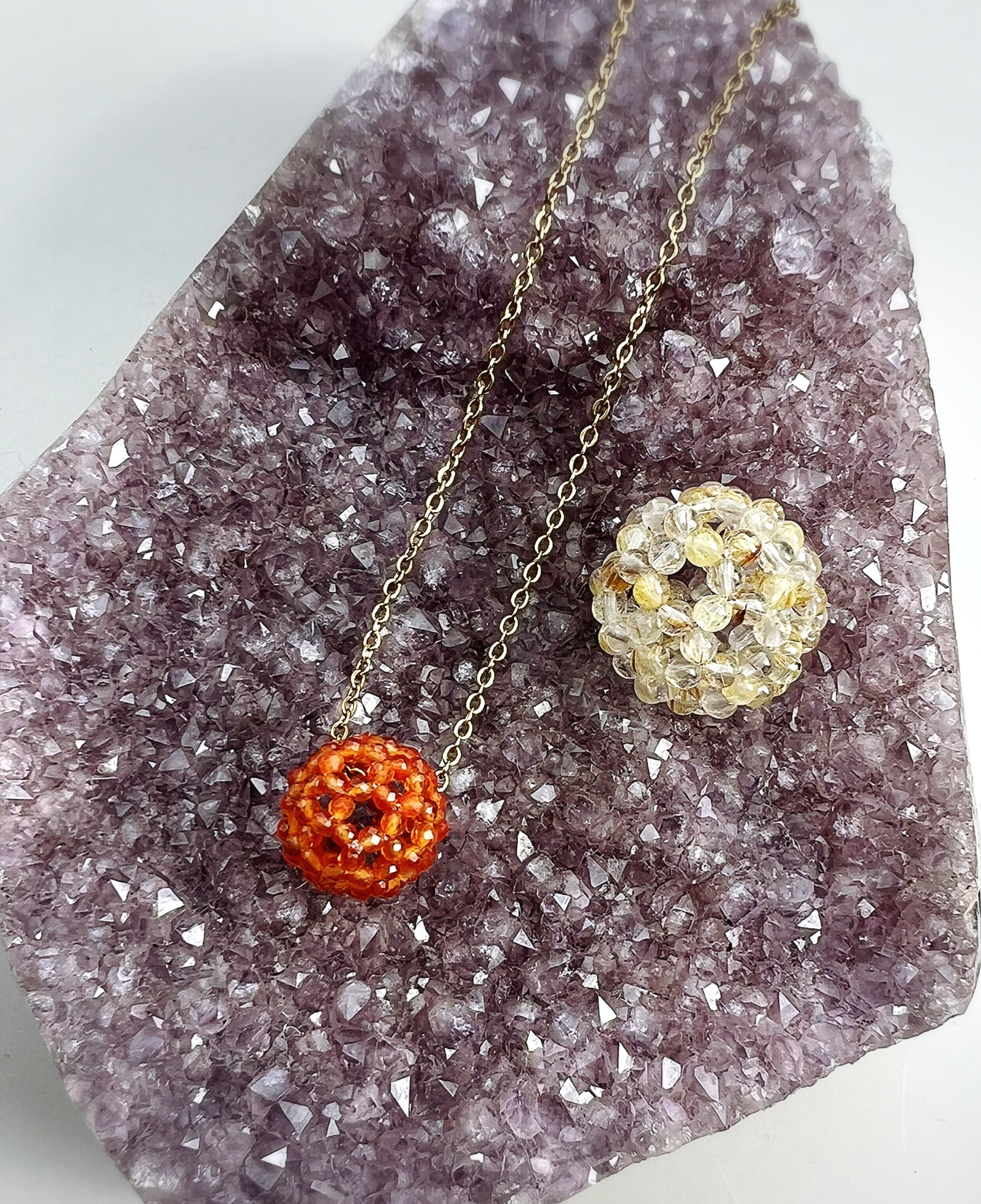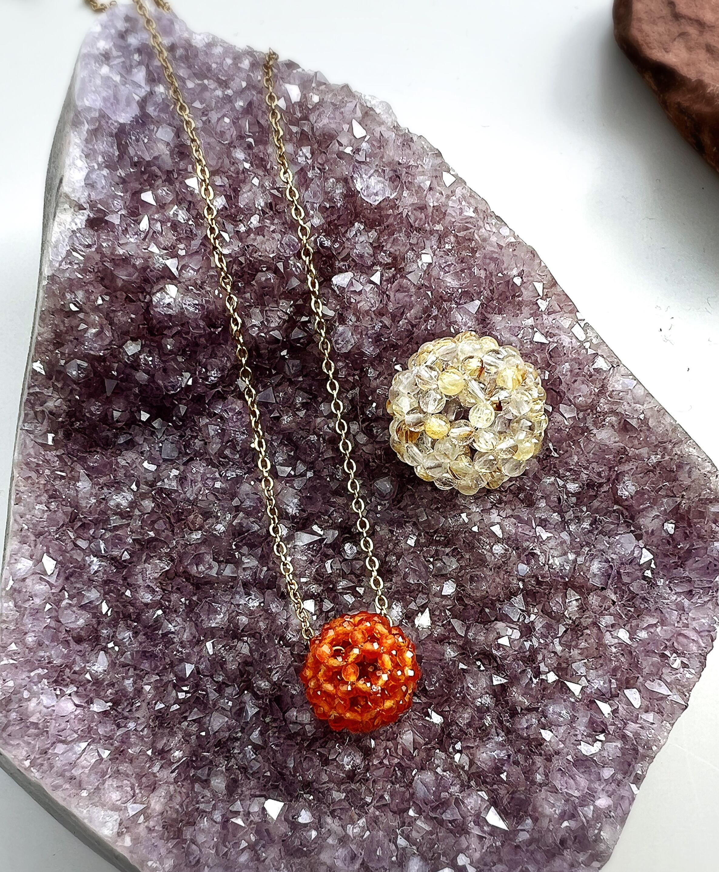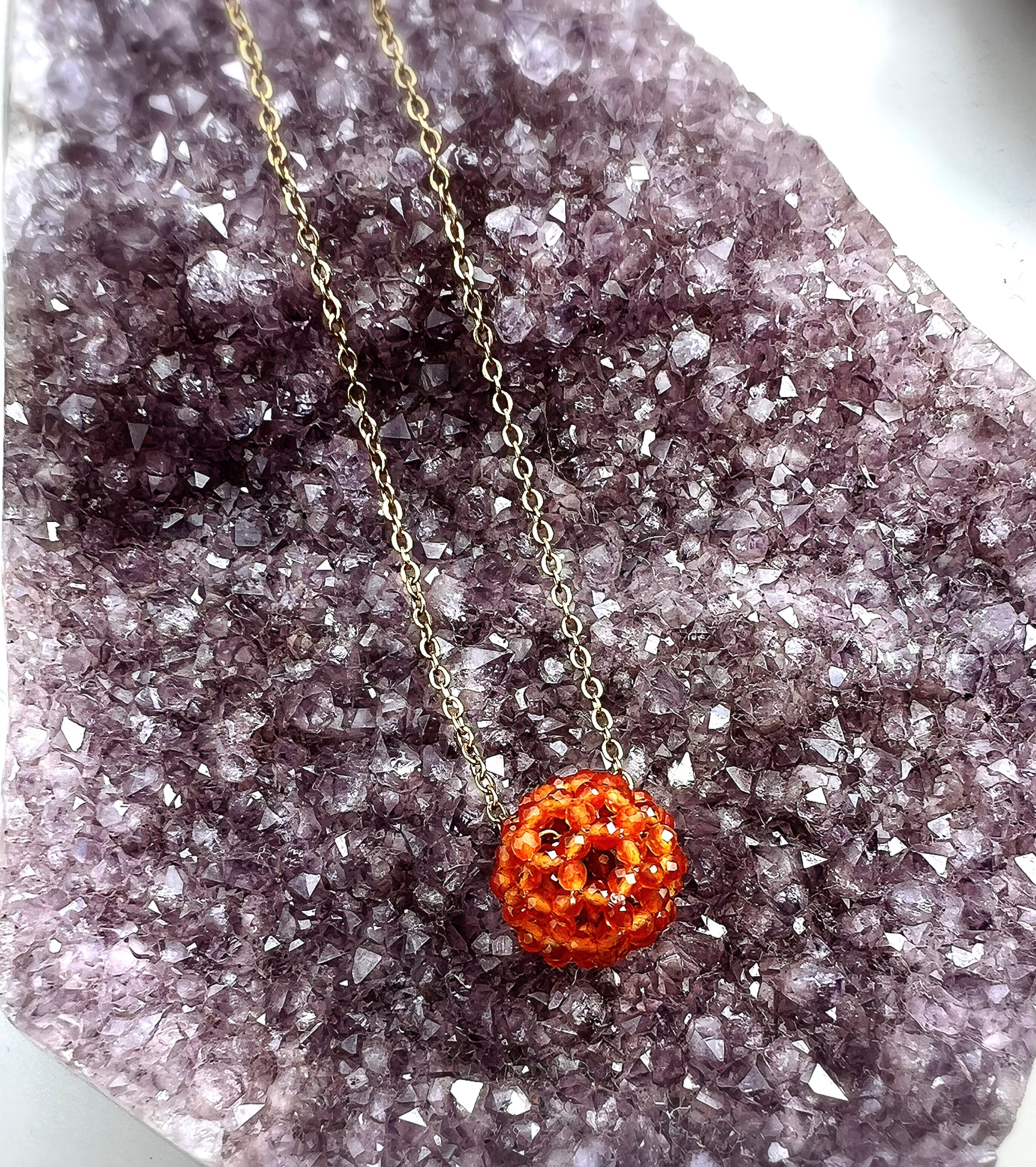 7月の誕生石【カーネリアン】神聖幾何学バッキーボールネックレス