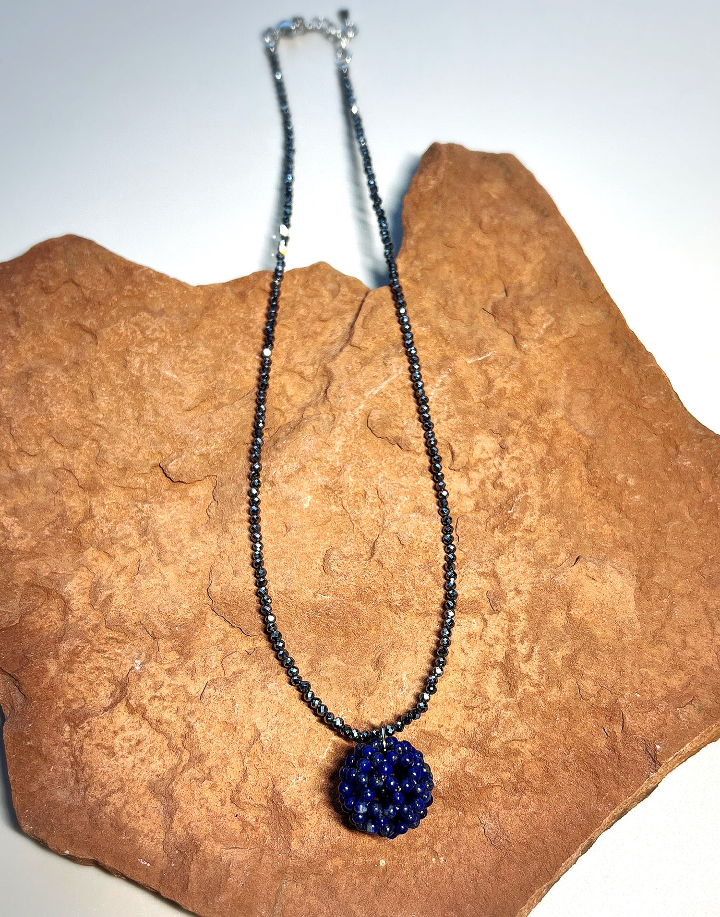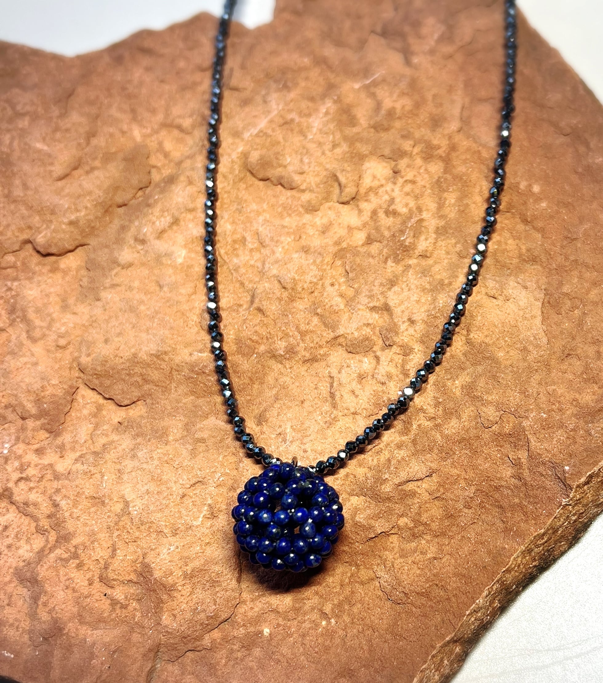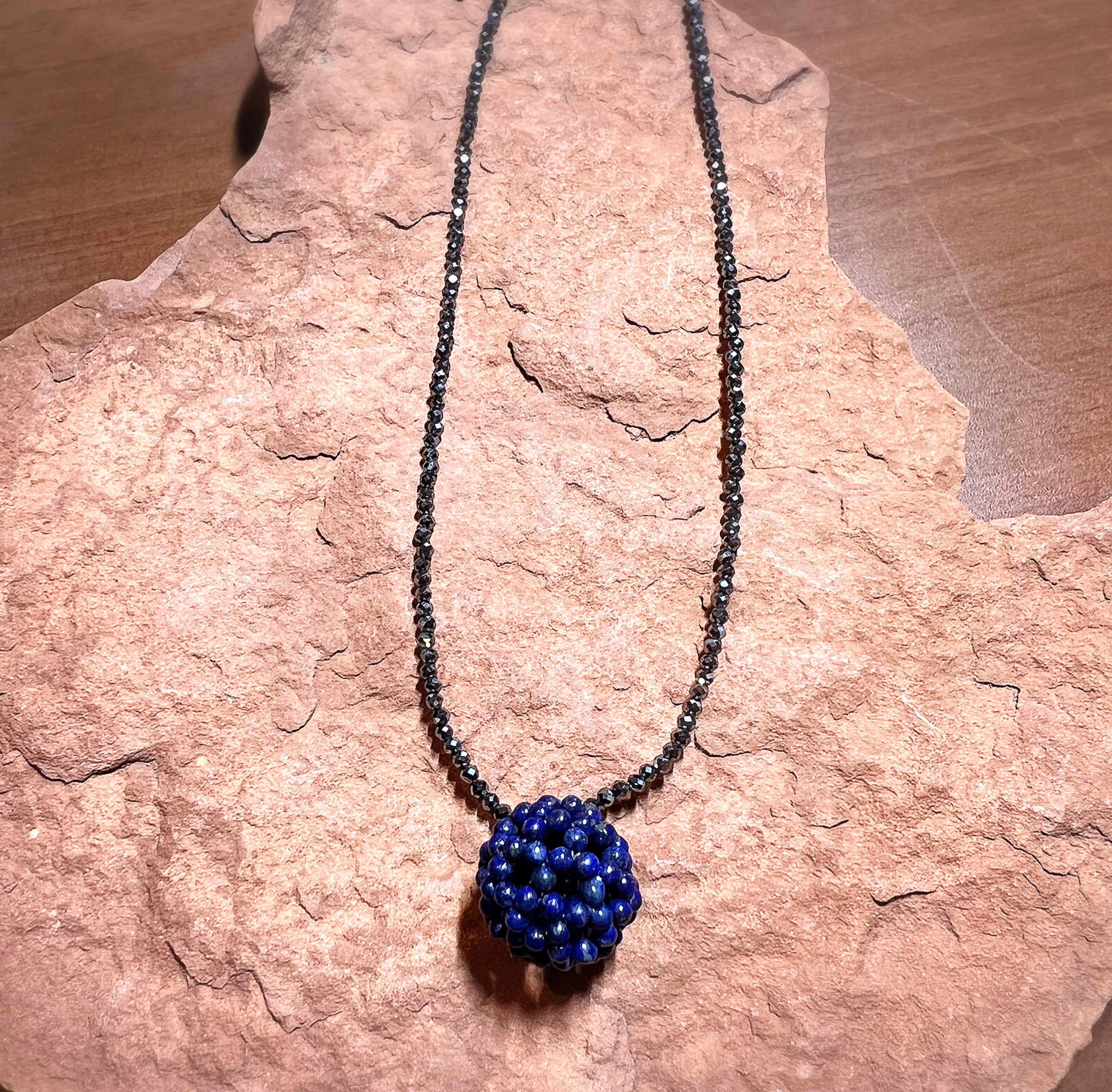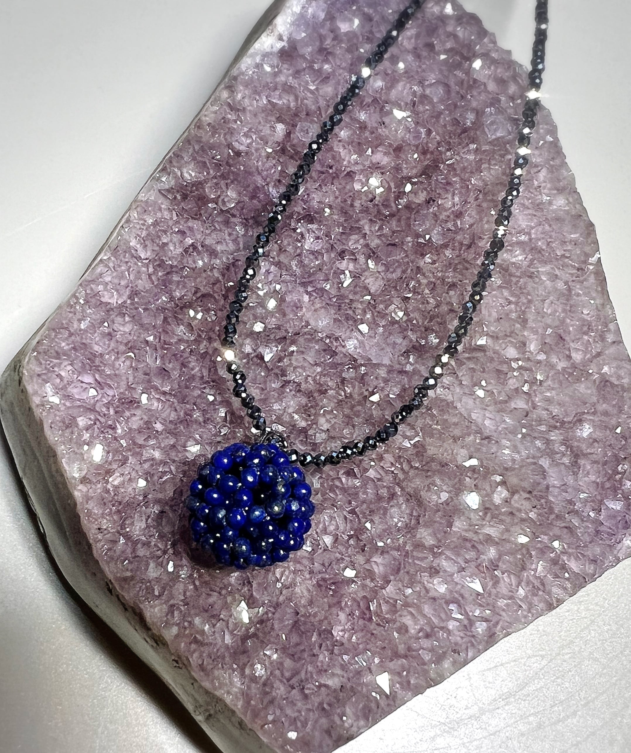 12月の誕生石【ラピスラズリ】神聖幾何学バッキーボール×テラヘルツネックレス