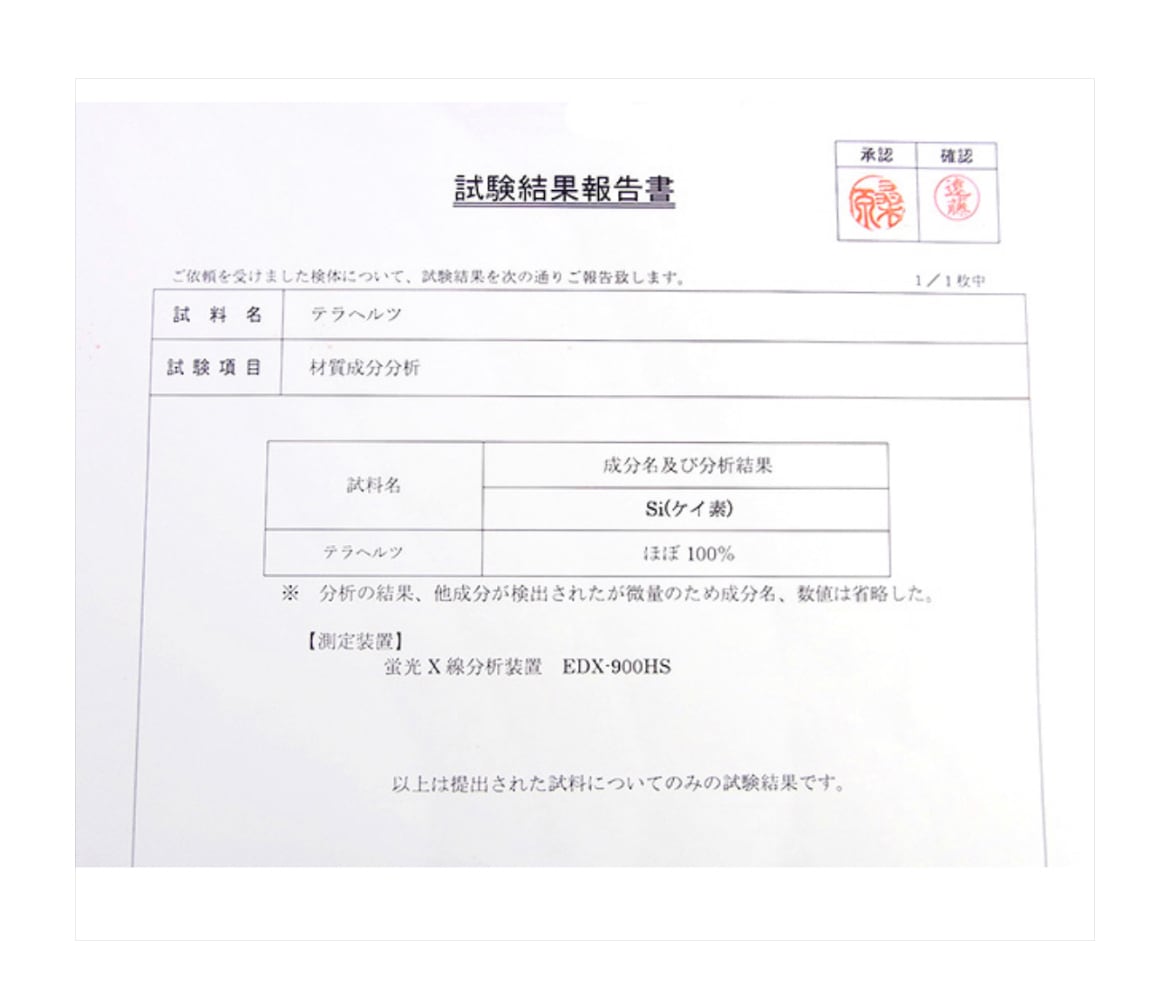 こちらは検査・鑑別済高純度テラヘルツ(ケイ素)です。 健康石として注目を集めています。※ケイ素水とは異なります。