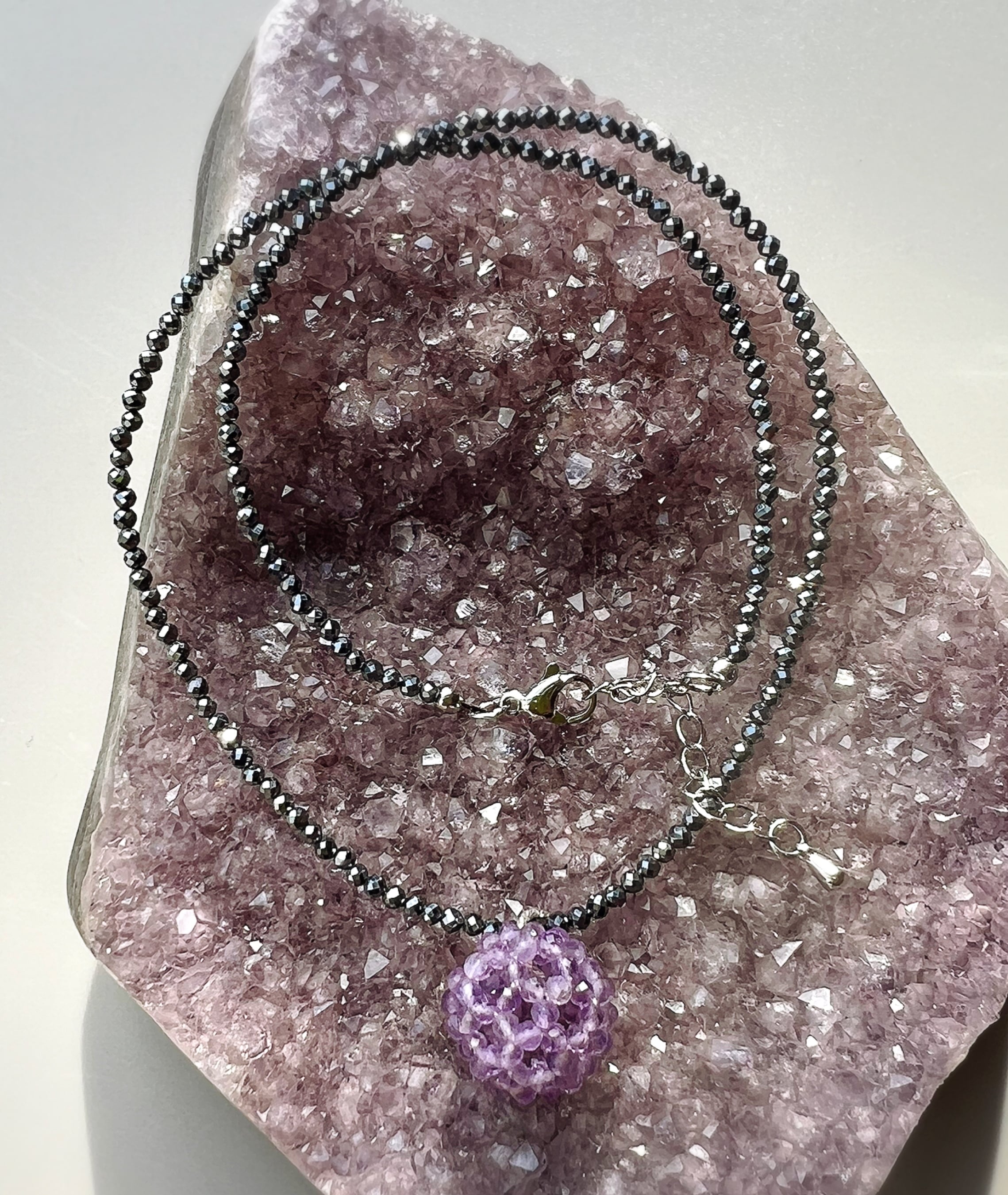 2月の誕生石ピンクアメジスト【神聖幾何学バッキーボール・フラーレン】×テラヘルツネックレス