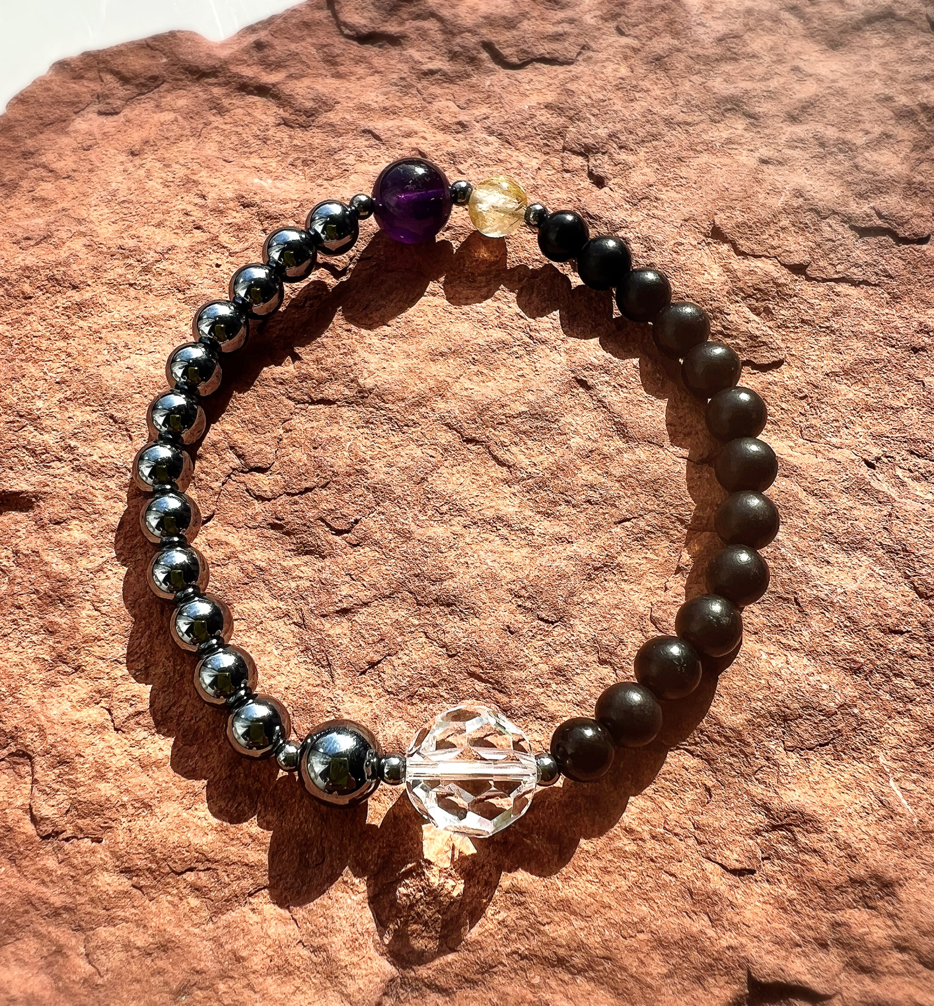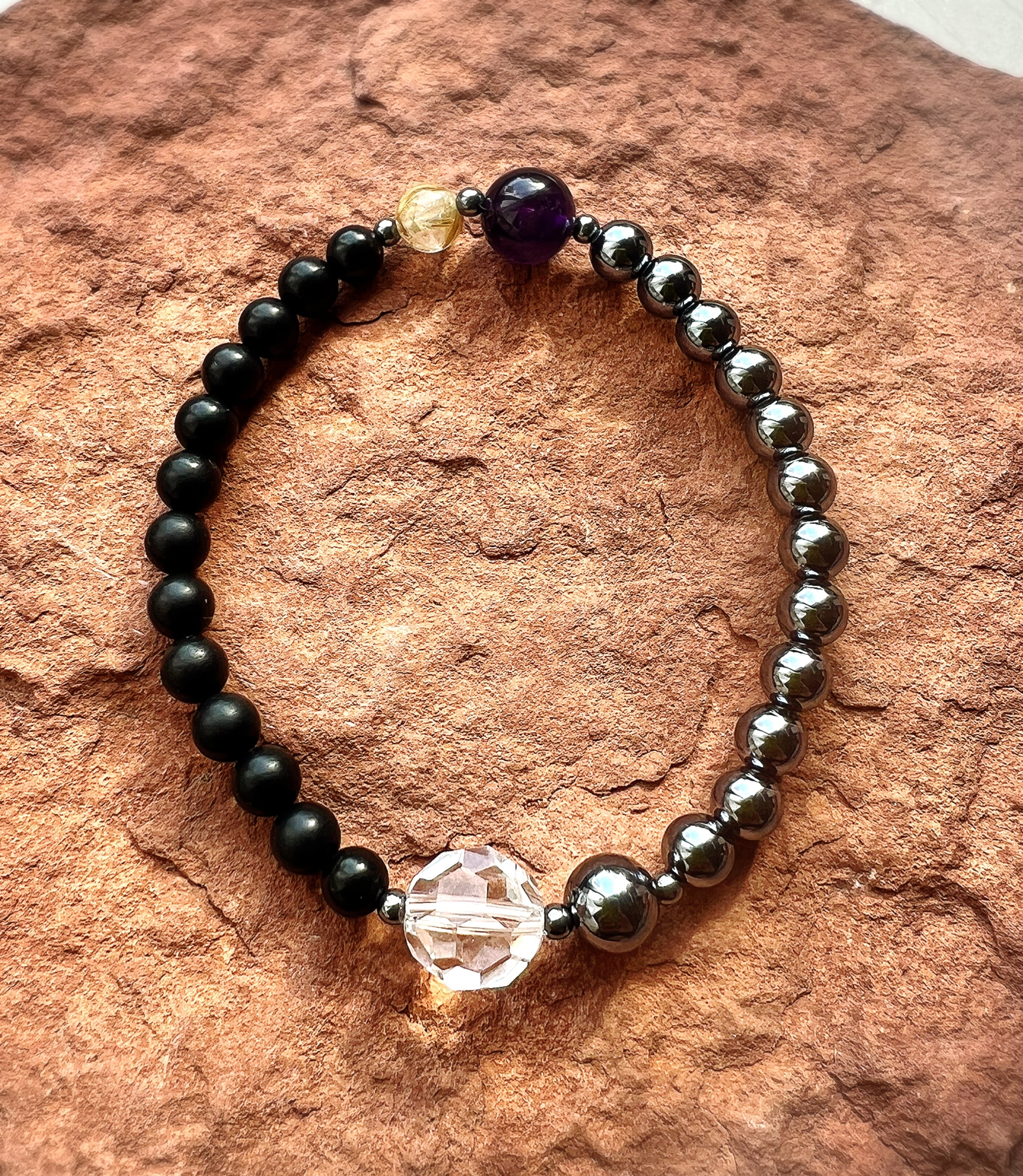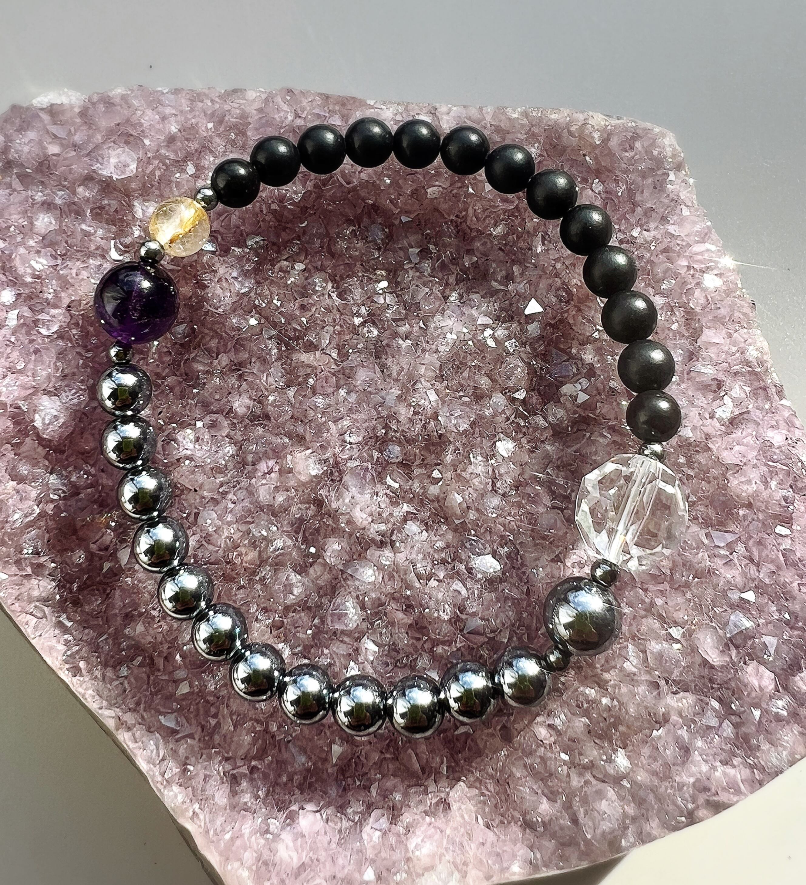 【2月の誕生石アメジスト×ルチルクォーツ×バッキーボールカット水晶×シュンガイト×テラヘルツ】ブレス
