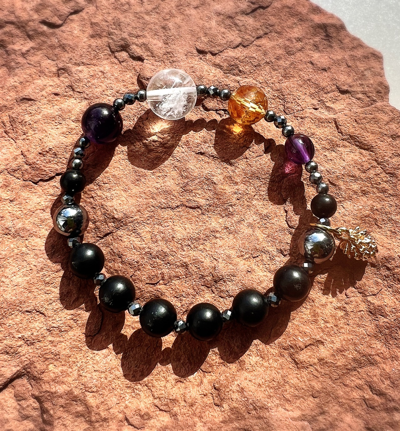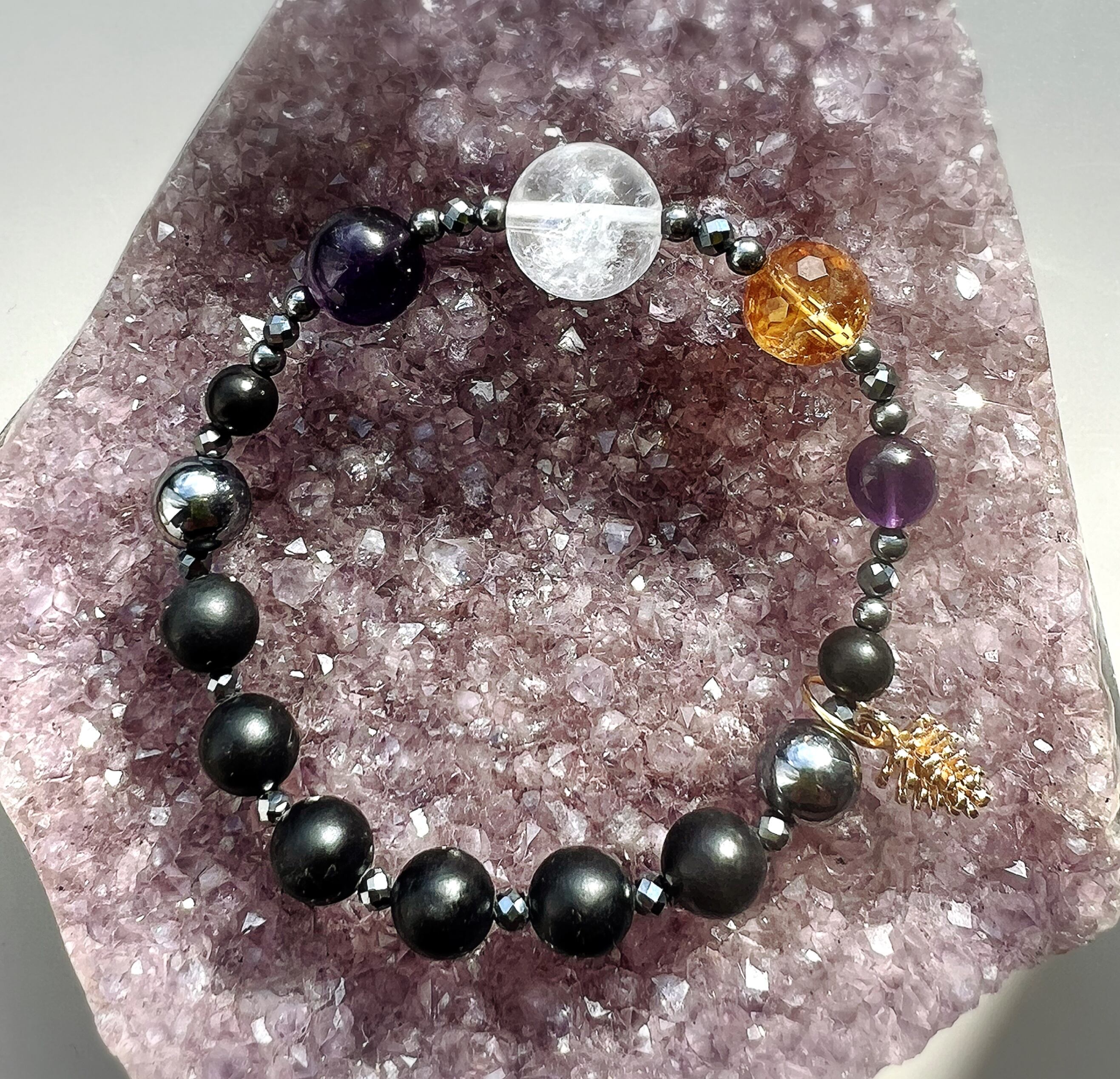 2月の誕生石アメジスト×シトリン×ヒマラヤ産アイスクォーツ×シュンガイト×テラヘルツ×ブラックシリカ